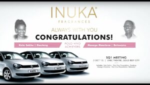 On Saturday 24th January 2015 Inuka Fragrances presented one of their leaders, Florence Thakali, with her brand new 1.4L Polo Vivo sedan, registered in her personal name.