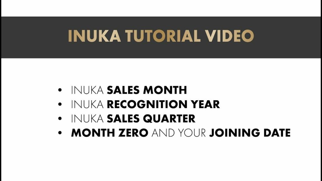 In this Video Tutorial we explain the INUKA Sales Month, INUKA Recognition Year, INUKA Sales Quarter, Month Zero and your Joining Date.